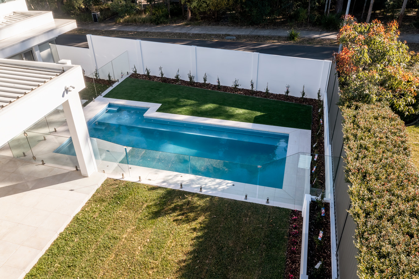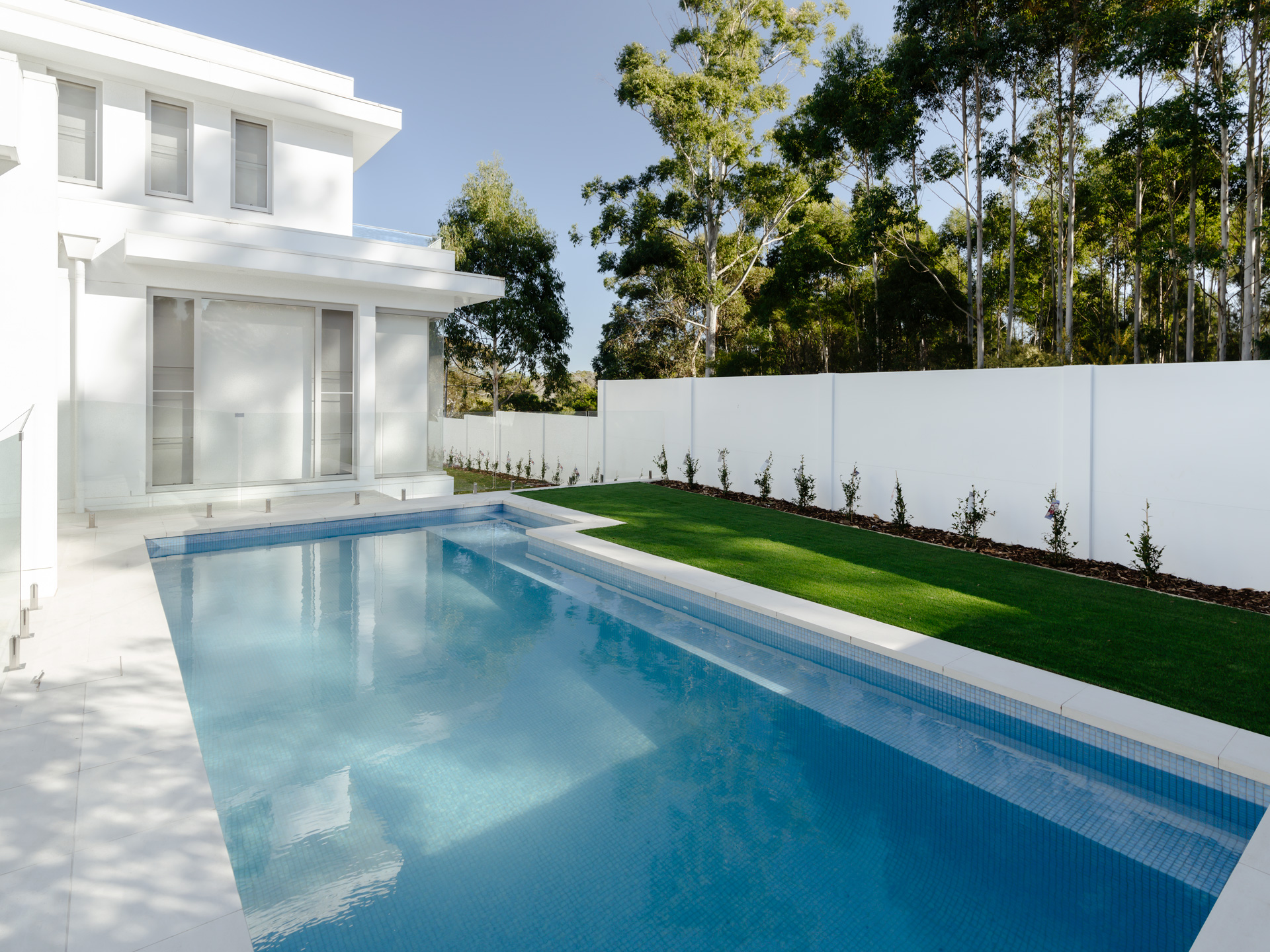 This stunning custom-designed pool was crafted for a discerning client in the Sydney suburb of South Turramurra and showcases our expertise in creating elegant, modern outdoor living spaces. The pool features a sleek, infinity-edge design with premium blue mosaic tiling, complemented by a spacious surrounding deck of high-quality white stone. Integrated steps and a shallow lounging area add functionality and luxury, perfectly tailored to the client’s vision. This project exemplifies our commitment to blending sophistication with practicality, elevating the property’s aesthetic and value.