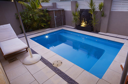 Plunge pools are usually small to medium in size. They are great for relaxing but are generally not big enough for swimming laps or for family/child activities. They are ideal for those with a small land size or those who don’t wish to have a full size pool.
